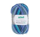 Gründl Hot Socks "Madena" is supplied as a 100 g ball with a running length of approx. 420 m. To make a sweater in size 38, about 500 g, for a pair of socks up to size 46 about 100 g Hot Sock's madena wool. For knitting and crocheting a needle in the thickness 2.5 - 3.0 mm is recommended.