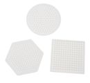 The Hama Boards-Mix consists of 3 plates with the motifs: 1 round Ø 8.5 cm, 1 square 7.5 cm x 7.5 cm and 1 hexagon 8 cm x 9 cm.