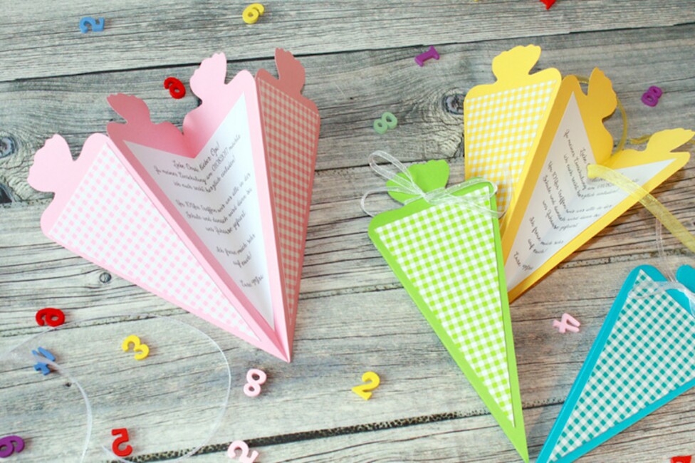 Take the school cone template and transfer it to the selected craft cardboard sheet. Carefully cut out the shape. Be careful and remove all visible pencil marks.