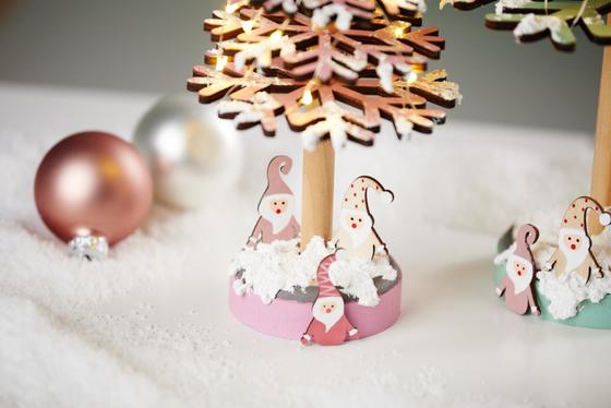 Decorated with some decorative snow and glued on scatter pieces, the fir trees are almost ready. Finally, the small micro LED lights are decorated on the fir trees and fixed with a little craft glue or hot glue.