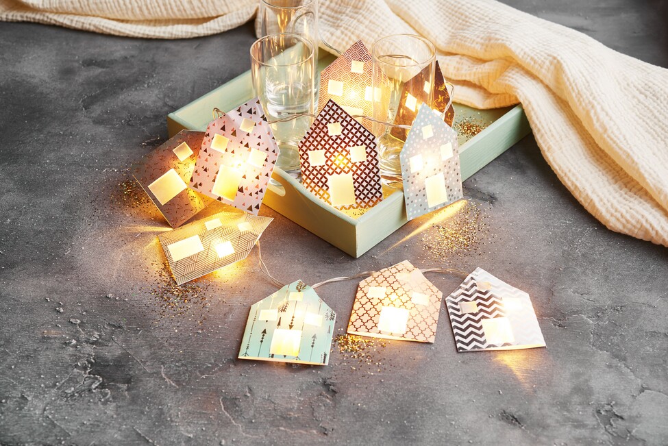 Are you looking for a sparkling and creative decoration idea for your home? Our DIY-Garland of illuminated houses is the perfect choice! With these instructions, you'll learn how to make a wonderful garland of illuminated houses that will bathe every corner of your home in a cozy light. Be inspired by these instructions and discover how easy it is to create something magical.