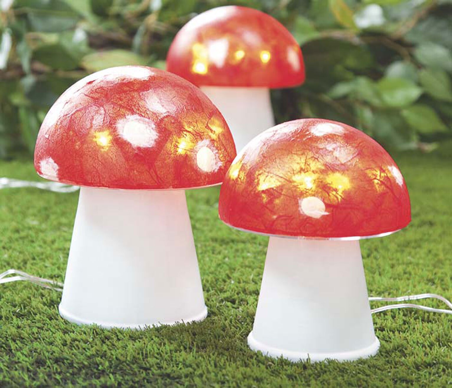Use hot glue to glue the cutting discs and ball halves together to form mushroom heads and fix them to the rose pots.