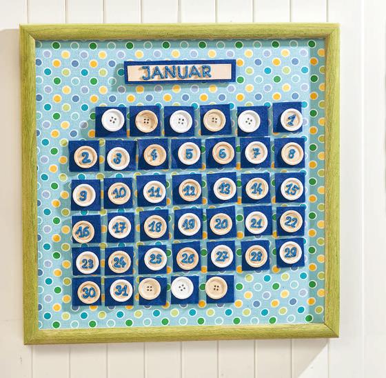 Cut out 2 cm circles from cardboard and glue them into the buttons, then write the numbers 1 to 31 on them with the 3D-liner.