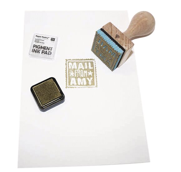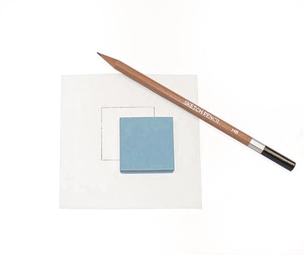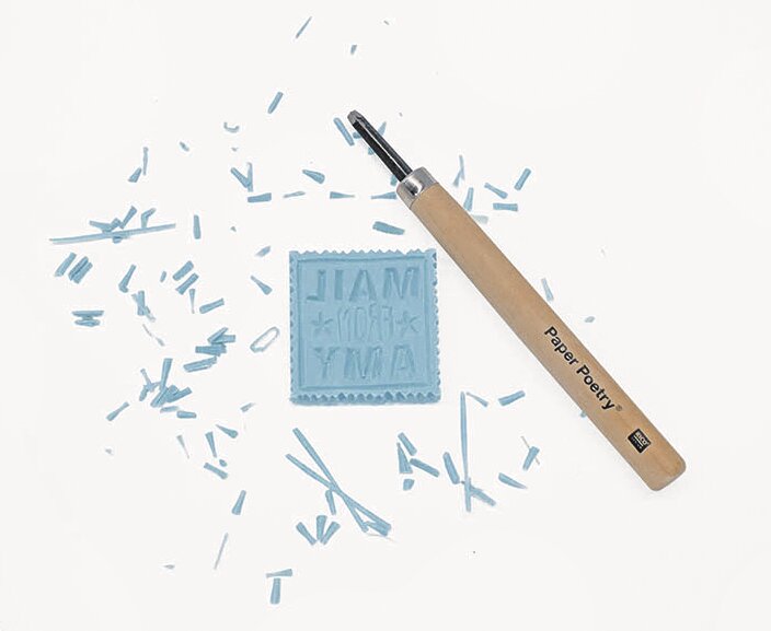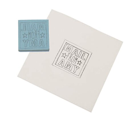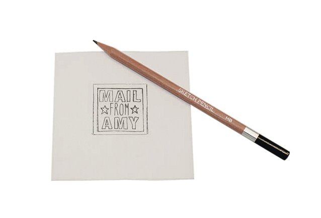 3. Next, place the sketched motif with the painted side on the rubber stamp and rub your fingers firmly over it. By the pressure the picture is transferred mirror-inverted on the rubber stamp . Draw the lines again if necessary.