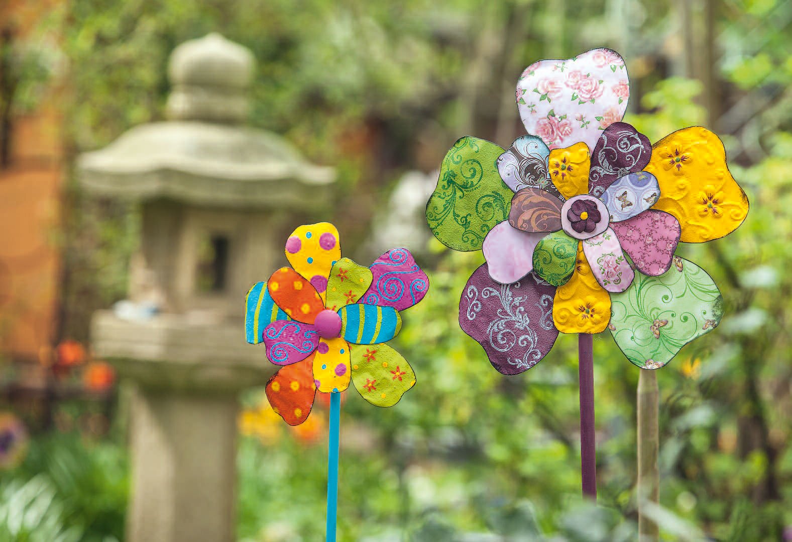Flowers made of colourful aluminium sheeting bring colour into the garden, even if Sun should not shine. With the help of these instructions you can make your own metal plugs for outside.