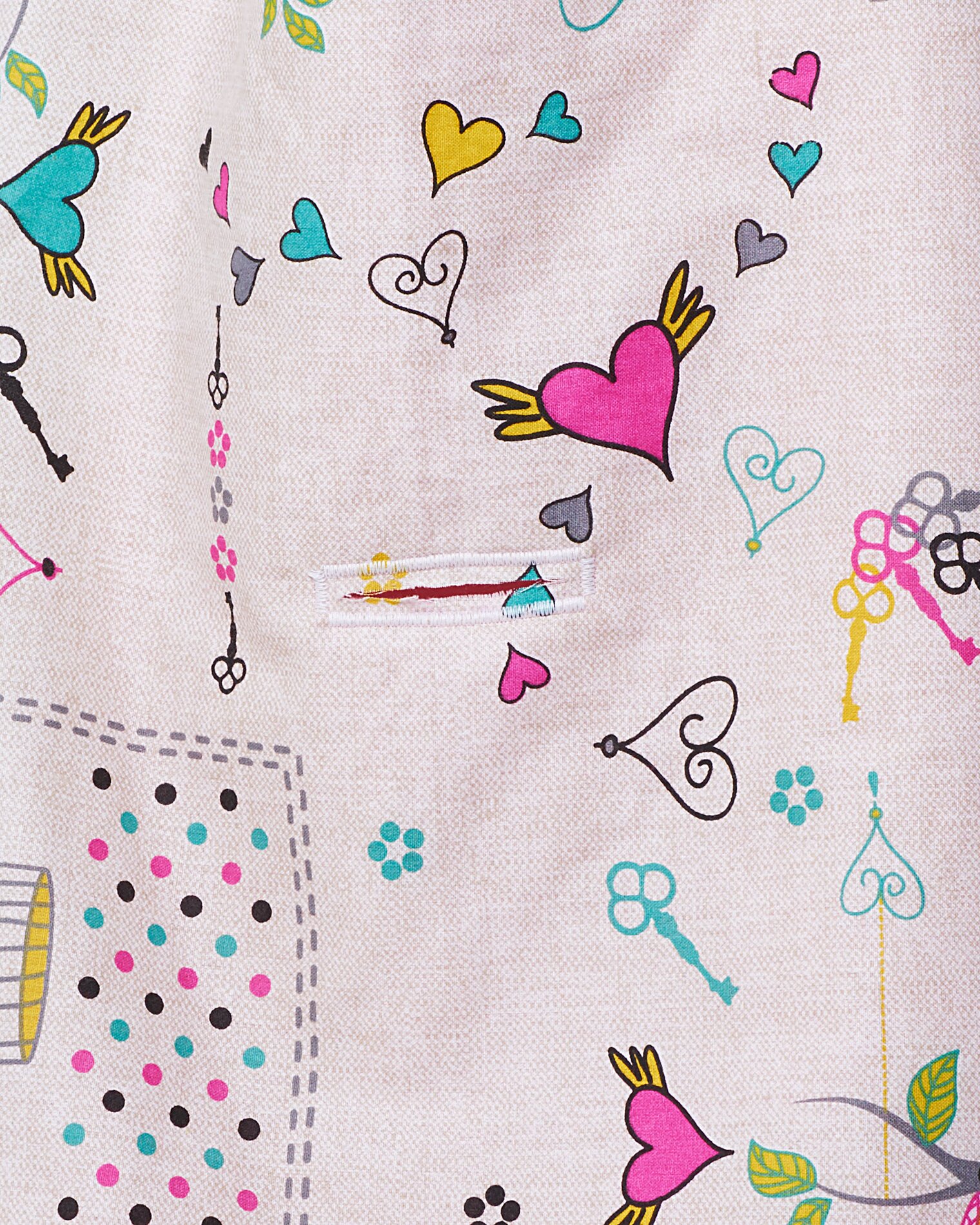 First the printed side of the fabric is folded once in the middle, so that the width of the fabric is 70 cm when folded. At the folding edge (fabric break), each pattern piece is now placed once and transferred to the fabric with one.