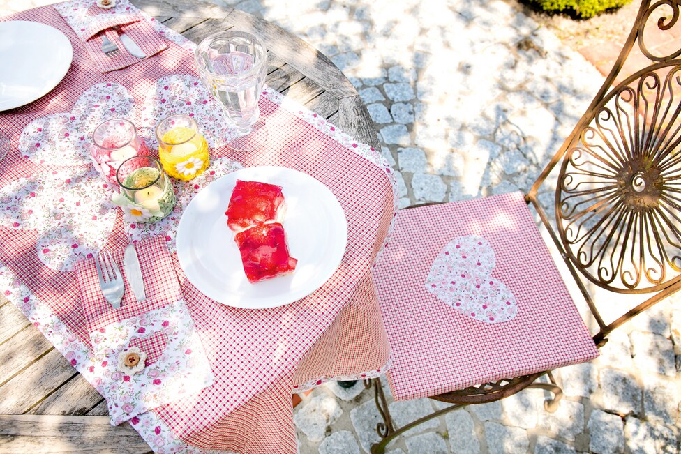 Summer time is garden time! For more cosiness and a romantic look in your garden, on the terrace or on the balcony, our self-sewn table runners , seat cushions and cutlery bags will make your garden look more cosy. In this manual we explain how to sew these beautiful accessories quickly and easily. This makes sitting outside even more fun!