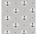 A wonderful Jersey fabric "Anchor" as fabrics by the meter with a width of approx. 150 cm and a fabric weight of approx. 174 g/m². The material is made of 96% cotton and 4% spandex, washable at 30 ° C delicates. The motif has a size of about 1.7 cm. Jersey fabric is a very popular clothing fabric and excellent for comfortable and cozy fashion.