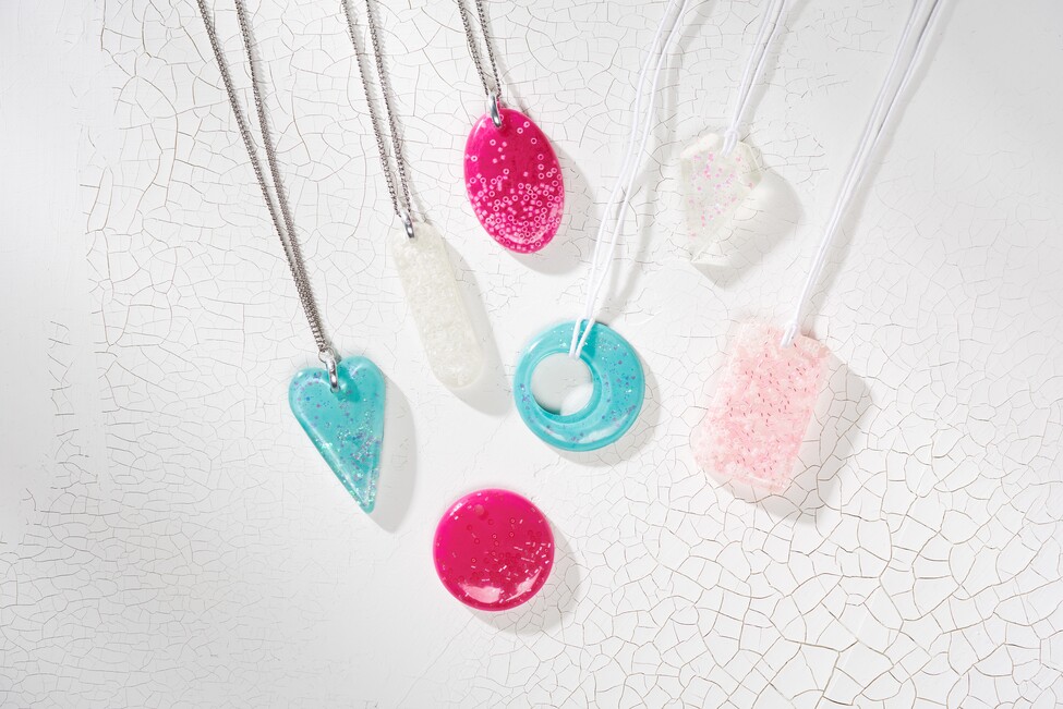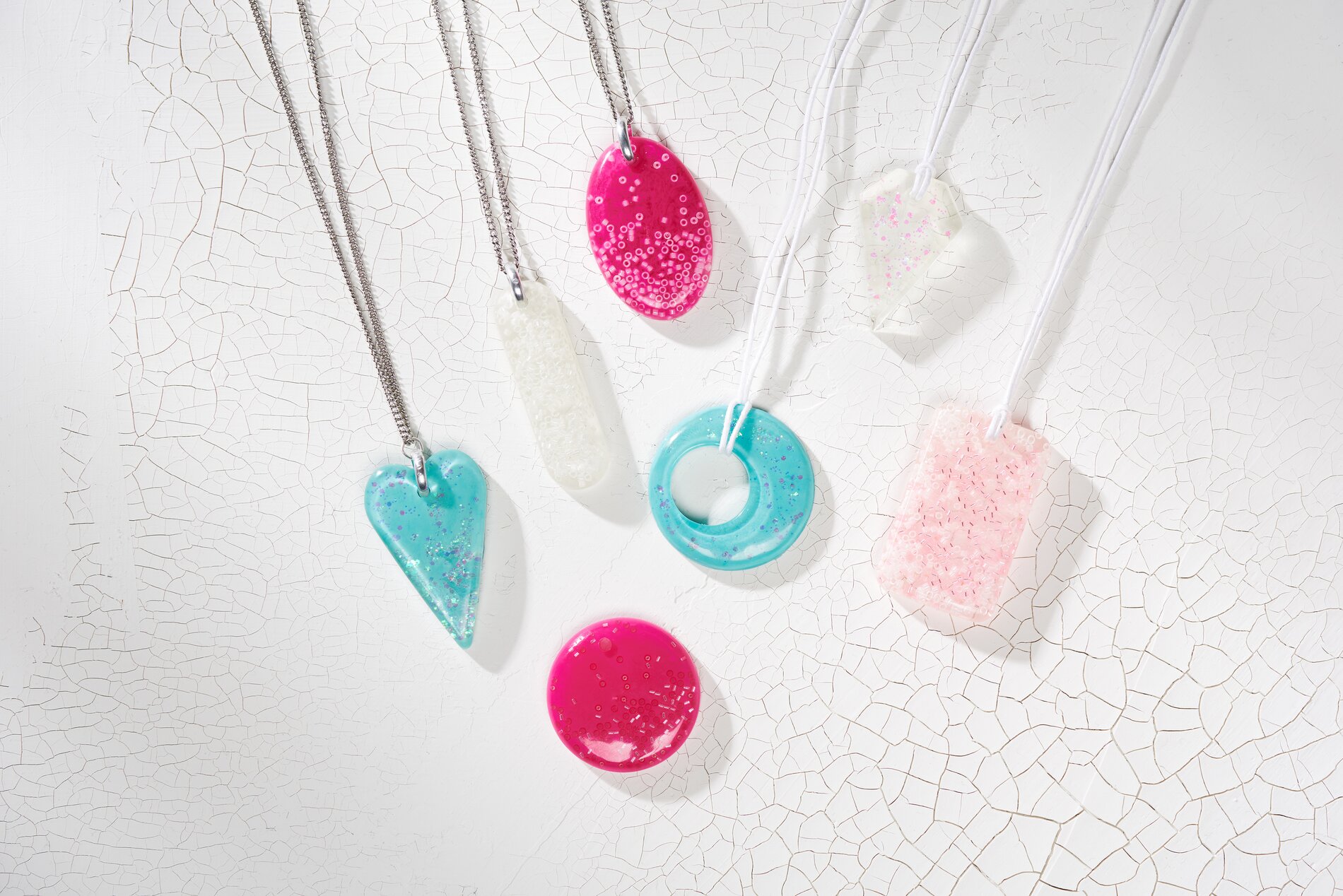 These self-made cast resin pieces of jewelery are a real eye-catcher and easy to craft with. Your creativity knows no limits. You can achieve many great results with a wide variety of colors.