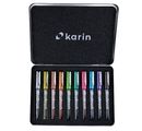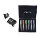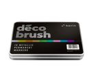 A Karin Deco Brush Metallic 10 colors set based on metallic pigments. They provide excellent coverage of black and white surfaces. The pens each contain 2.4 ml of non-toxic paint and are made with "Liquid Ink" technology. Unlike traditional pens, it allows 100 % consumption of the color it contains. After drying, the paint holds permanently and firmly, light-resistant and waterproof on surfaces such as paper, wood, ceramics, glass, metal and plastic. All decorations and drawings made with Deco Brush Markers are durable and remain lightfast for many years. The pens are equipped with a durable and flexible tip in the form of a brush. The material of the brush tip is a nylon polyester.