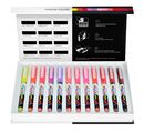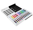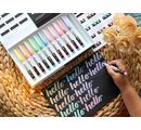 Karin PIGMENT Decobrush Collection with 12 markers in an exclusive case for easy use and protection of the markers. Included are different colors with a filling quantity of 2.4 ml each. The pens from the Collection Pigment Decobrush are filled with an opaque, matte and non-toxic acrylic paint based on organic pigments. After drying, the colors are lightfast, permanent and opaque. With these paints you will achieve the best results on paper, metal, glass, stone, plastic, wood, textiles, stretcher frames and many other materials. The color also allows application to dark surfaces. The inks are produced using "liquid ink" technology. Unlike traditional pens, it allows 100% consumption of the color it contains. The brush-like tip is made of nylon and is very flexible. This allows you to apply thin and thick lines or paint great ornaments and surfaces.