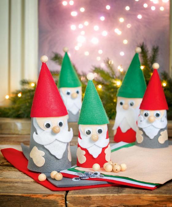 Make funny gnomes out of the VBS Creative set Secret Santa. This set already contains all materials for two big and three small gnome guys. These will certainly be the new eye-catcher of your Christmas decoration!