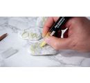 Preparations: Shake the marker well and then pump it a few times onto a solid surface. The gold leaf priming milk runs visibly into the chisel tip.
