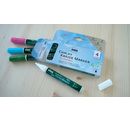 The set KREUL"Chalky Chalk marker - Window decoration" consisting of four pens and is particularly suitable for decorating windows and other glass surfaces. With the approx. 2 - 3 mm wide tip, especially writings can be painted on very well.