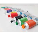 • 12 x 12 ml tubes in the colours white, Lemon Yellow, Orange, Vermillion, Violet Red, Coelin Blue, Ultramarine Blue, Light green, Sap green, Lights Ochre, Sienna burned and Black