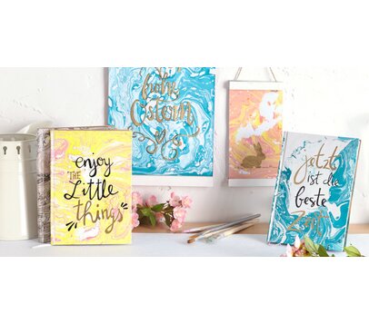 Achieve great metallic effects with immersion marbling. For stylish colour effects combine max. 3 metallic colours per dive. The marbled surface looks as if it has been printed on and bonds evenly with the substrate.