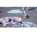 This KREUL "Streety street paint" is a set of 6 colors with a content of 200 ml each. It contains the colors cloud white, rubber duck yellow, striped sock red, slipper blue, grass green and balloon purple. A washable liquid chalk for painting on asphalt and paving surfaces. Not suitable for natural paving stones. A pre-test is recommended. The paint washes out well at 30 °C. It goes without saying that the chalk contains no harmful ingredients. Because contemporary children's art should be fun and sustainable - even if it is ephemeral.
