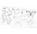 Processing of material: Select a motif from the motif template and place it under the special foil. Now trace the contours with the black contour paint and leave to dry for approx. 2 hours. Then paint the motif with the Window Color colours and leave to dry for 24 hours. The colours can be mixed with each other.