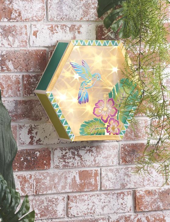 Prepare the Lamp foil for gluing in. For this, bend the edge backwards. Next, slide the stars-Lamp foil into the hexagon and attach them with double-sided Adhesive tape. Step 5 For a great lighting effect, attach a light source like a string of lights behind the frame. You will be impressed by the light effect. Your Lightbox is now ready and ready to move into your home!