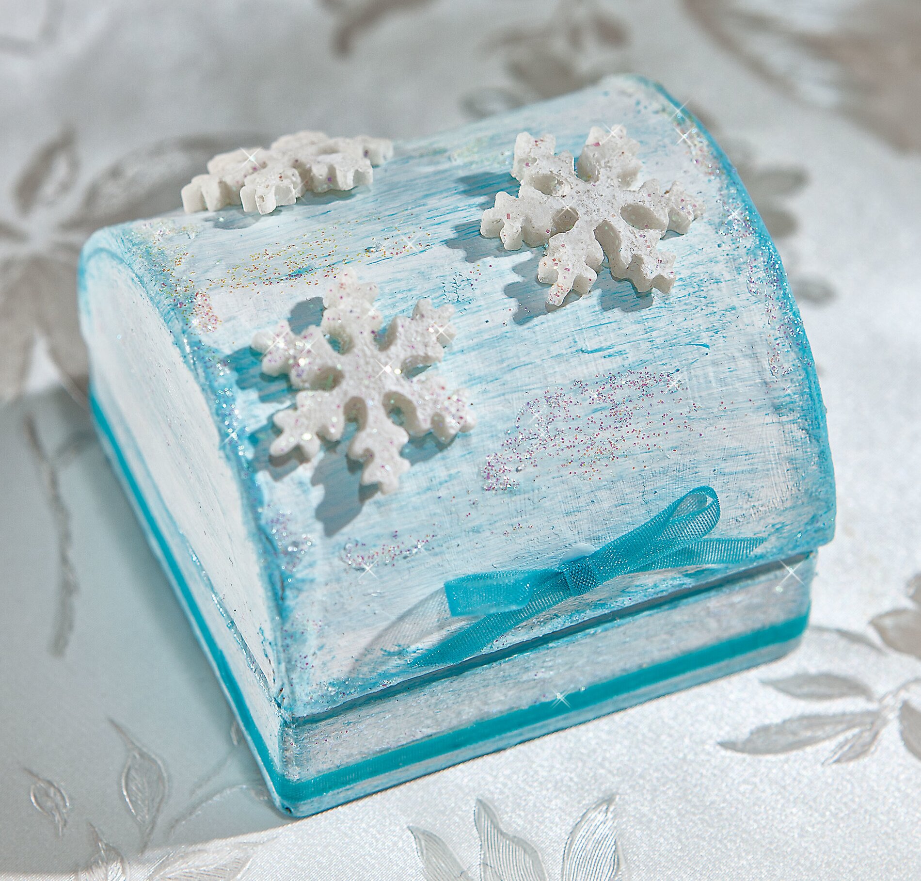 Prime the box white , wipe over the ice blue Handicraft paint with the Paint sponge and accentuate the edges turquoise blue.
