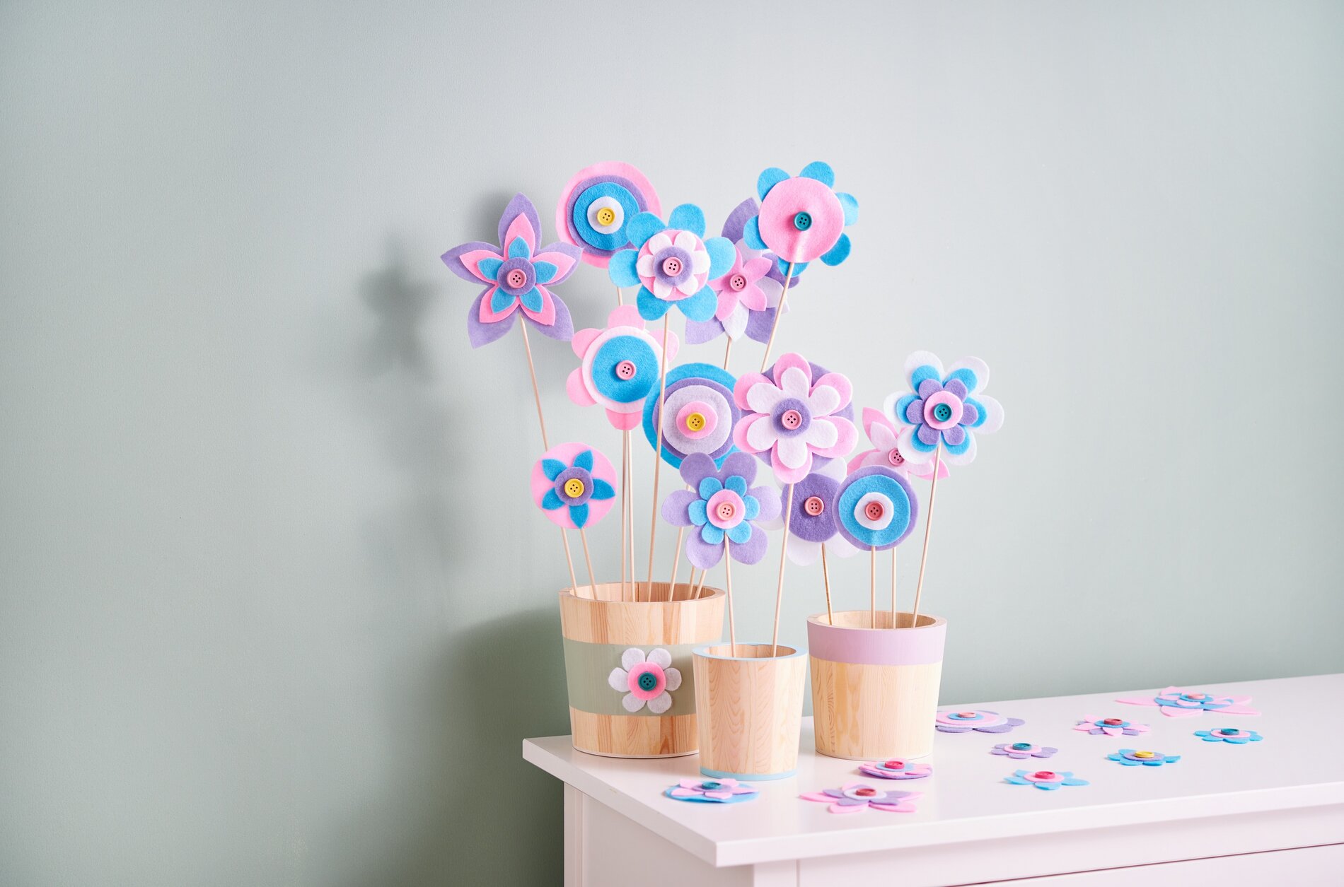 Felt flowers are a great project for craft afternoons. These flowers are easy to make and are very suitable for crafting with children. The finished flowers bring color to the children's room or dining table. The instructions are simple enough for young children to follow, but still leave room for their own creative ideas. Together with the children, you will not only make only beautiful decorations, but also spend valuable time together.