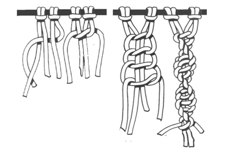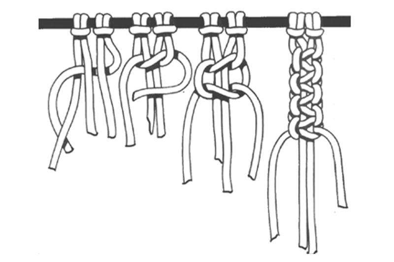 Continuously tie half weaver knots, always starting with the knotting cord of the same side. Thus the wave knots turn spirally around the guides. After about 6 knots one revolution is reached.
