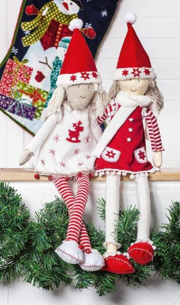 Finally, stick some felt stars on the Christmas caps and tie a scarf from Knitted tube around the mamsell with the red dress. Just put on the hats and slippers and you are ready with your Christmas-look Mamsells.