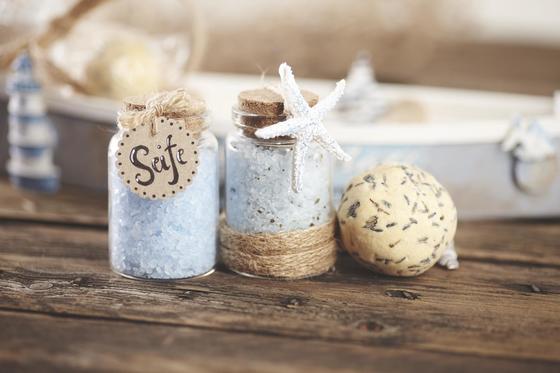 The bath balls can be packedin cellophane bags, for the Bath salts small glass bottles are converted into bottle mail. Simply tie a jute ribbon to it, write Fineliners on the self-adhesive labels and stick them to the ribbon from both sides.