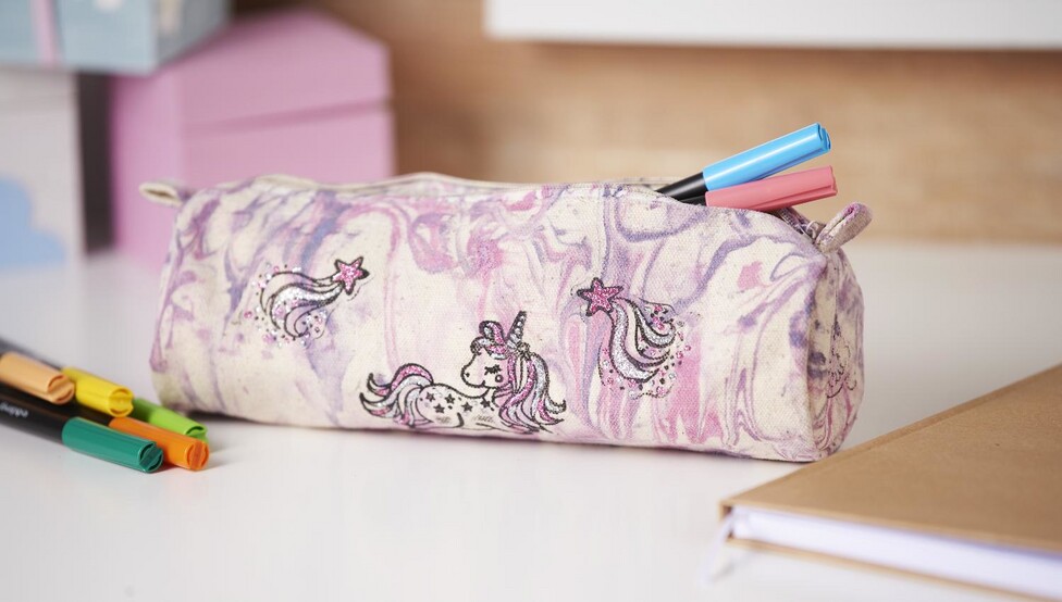 Place your stuffed Pencil case on the edge of your vessel, press it lightly and turn it so that the Pencil case