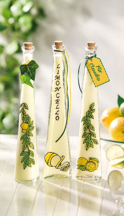 Homemade lemon liqueur in hand-painted bottles - a gift could not be more personal!