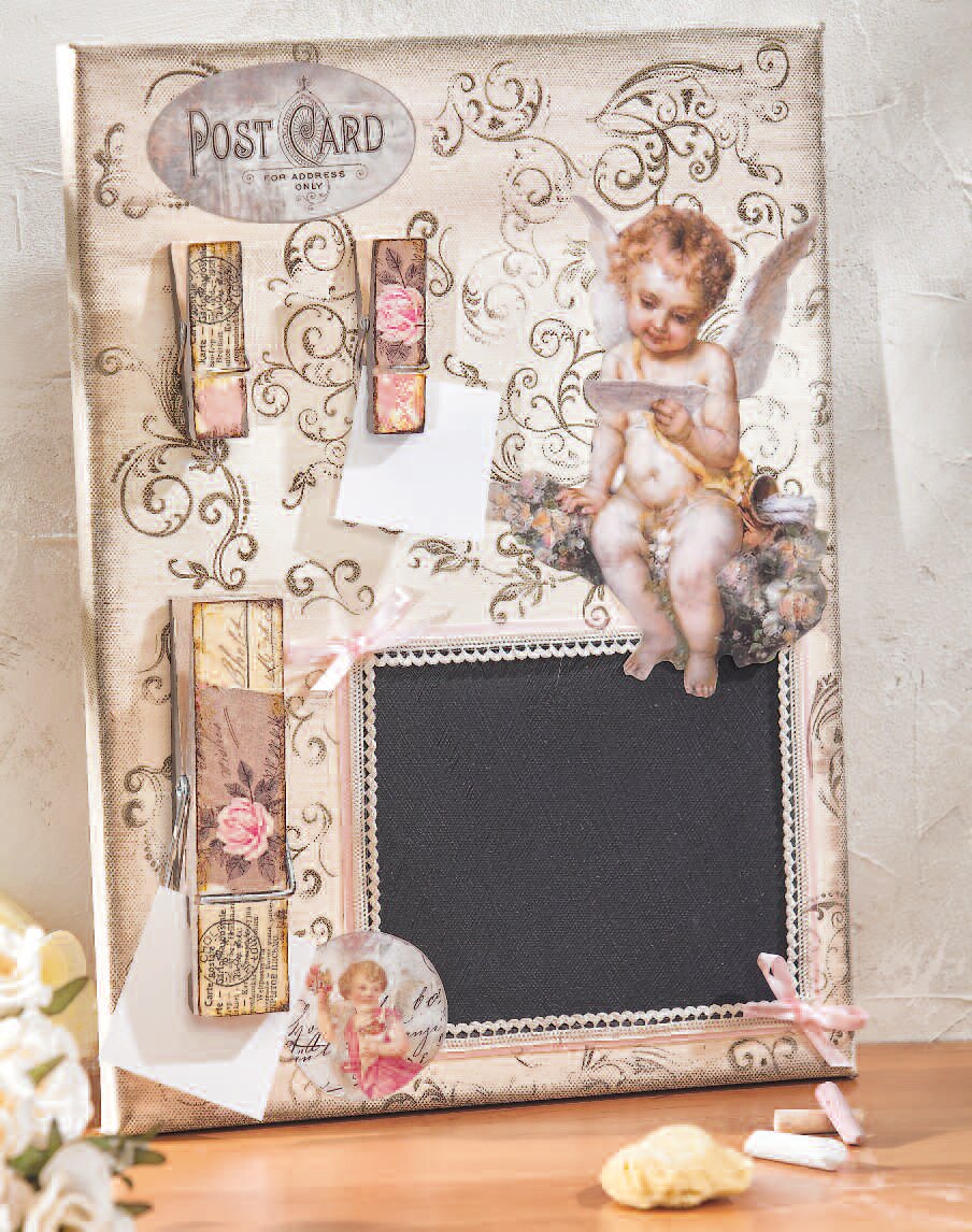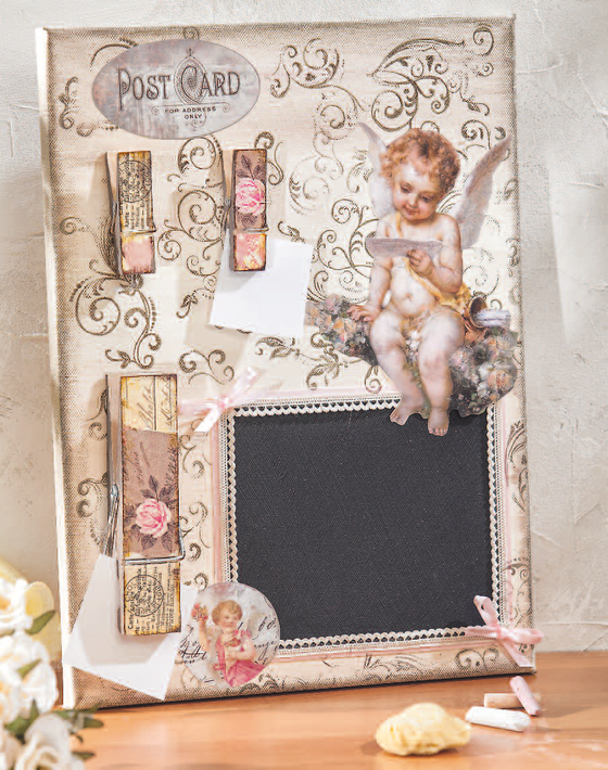 Cover an area of approx. 18 x 16 cm with crepe-Adhesive tape , then paint it with black Board paint . Remove the crepe-Adhesive tape immediately.