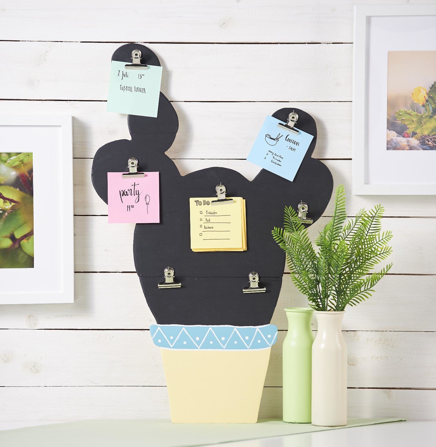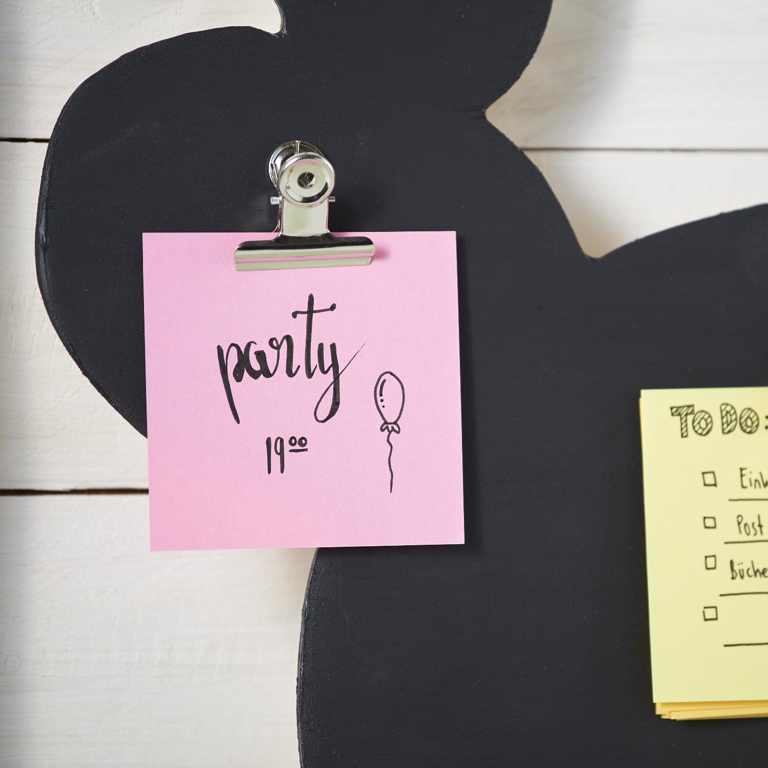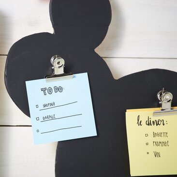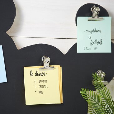 The board can already be written on with chalk. Use hot glue to fix a few letter clips to the self-designed memo board - after all, this way you can easily clip small notes!