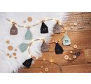 A versatile micro LED light chain for atmospheric eye-catchers in homemade decorations. The string of lights with warm white LEDs has a gold-colored bendable wire. In total, the chain of lights is approx. 100 cm long.