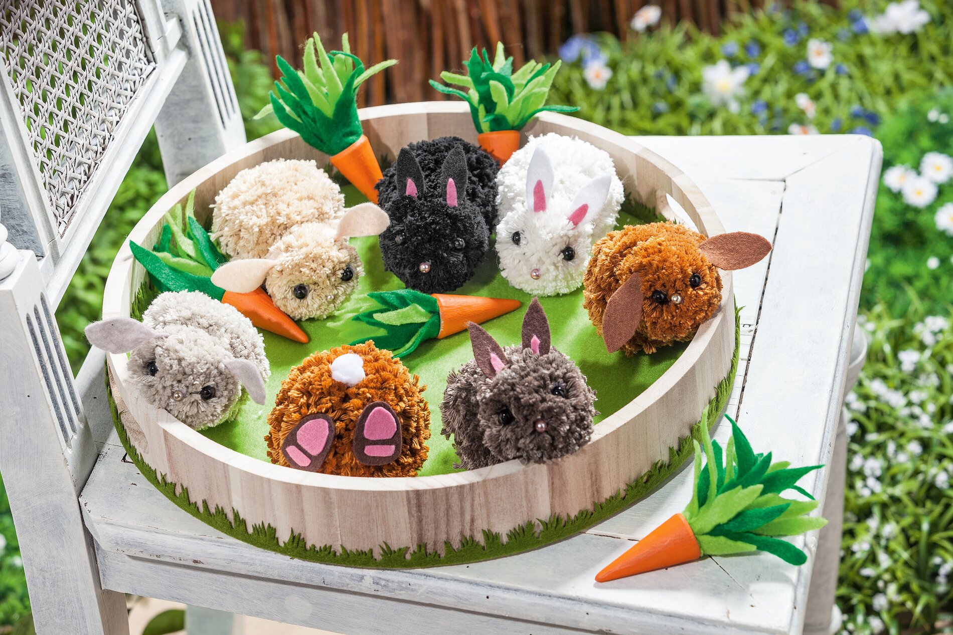 A great decoration idea: Treat yourself to this turbo-charged mini garden idea with pompom Easter bunnies. Perfect for the good mood and also for cuddling!