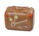 Versatile to decorate miniature suitcase "Reisekasse" as a money box with a length of about 8 cm and a width of about 5 cm. The height is approx. 6 cm.