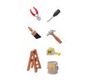 This set miniature tool consists of seven parts, which are provided with a glue dot on the back. The tool has a size of about 2.5 cm to 3 cm