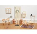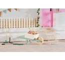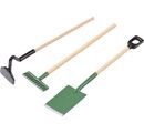 The miniature garden tool has a length of approx. 9 cm and consists of a hoe, garden rake and spade. The garden tools are made of metal with a handle made of wood.