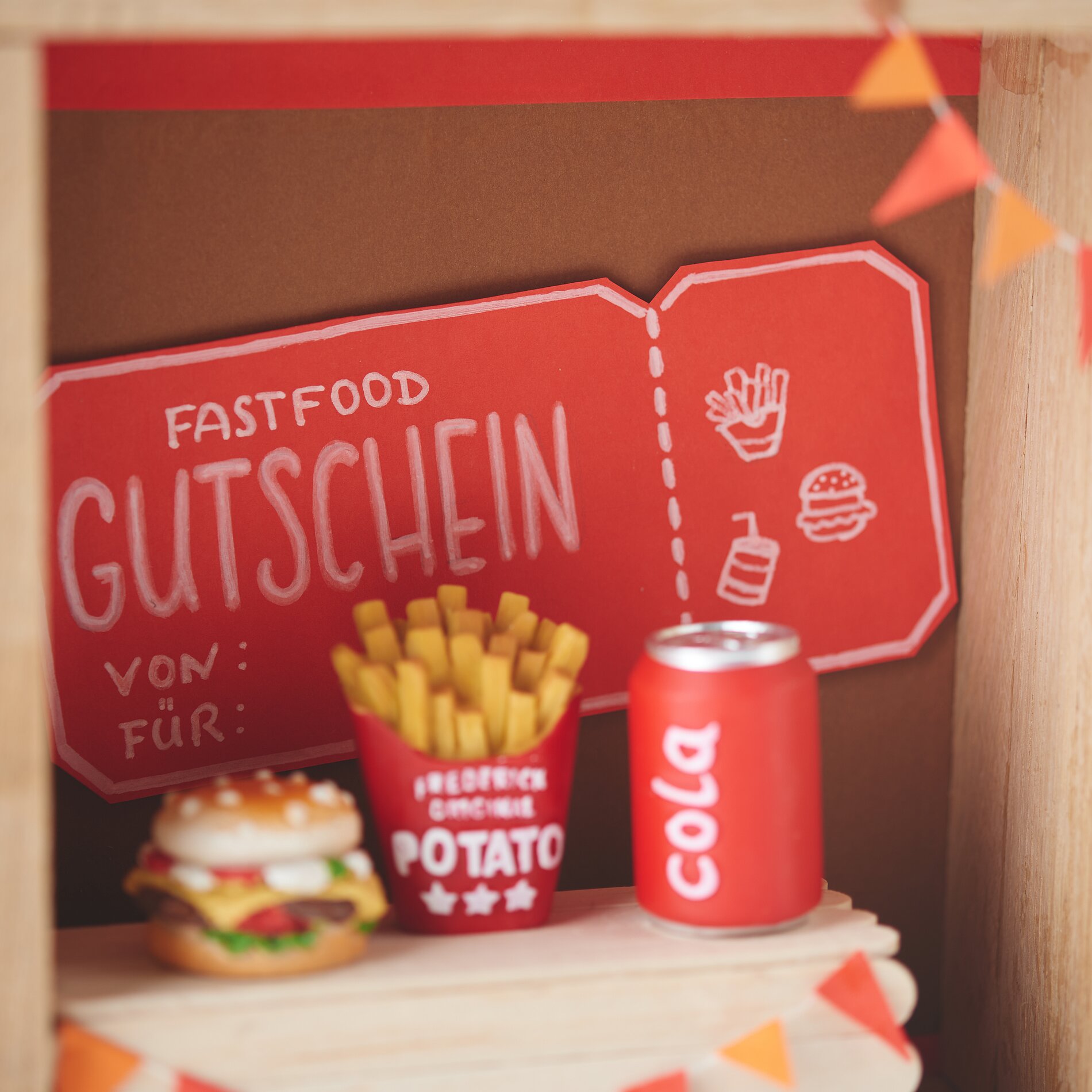Cut out your individual Voucher from colored Paper using the downloaded template. Attach it to the back wall with glue pads to create a 3D effect.