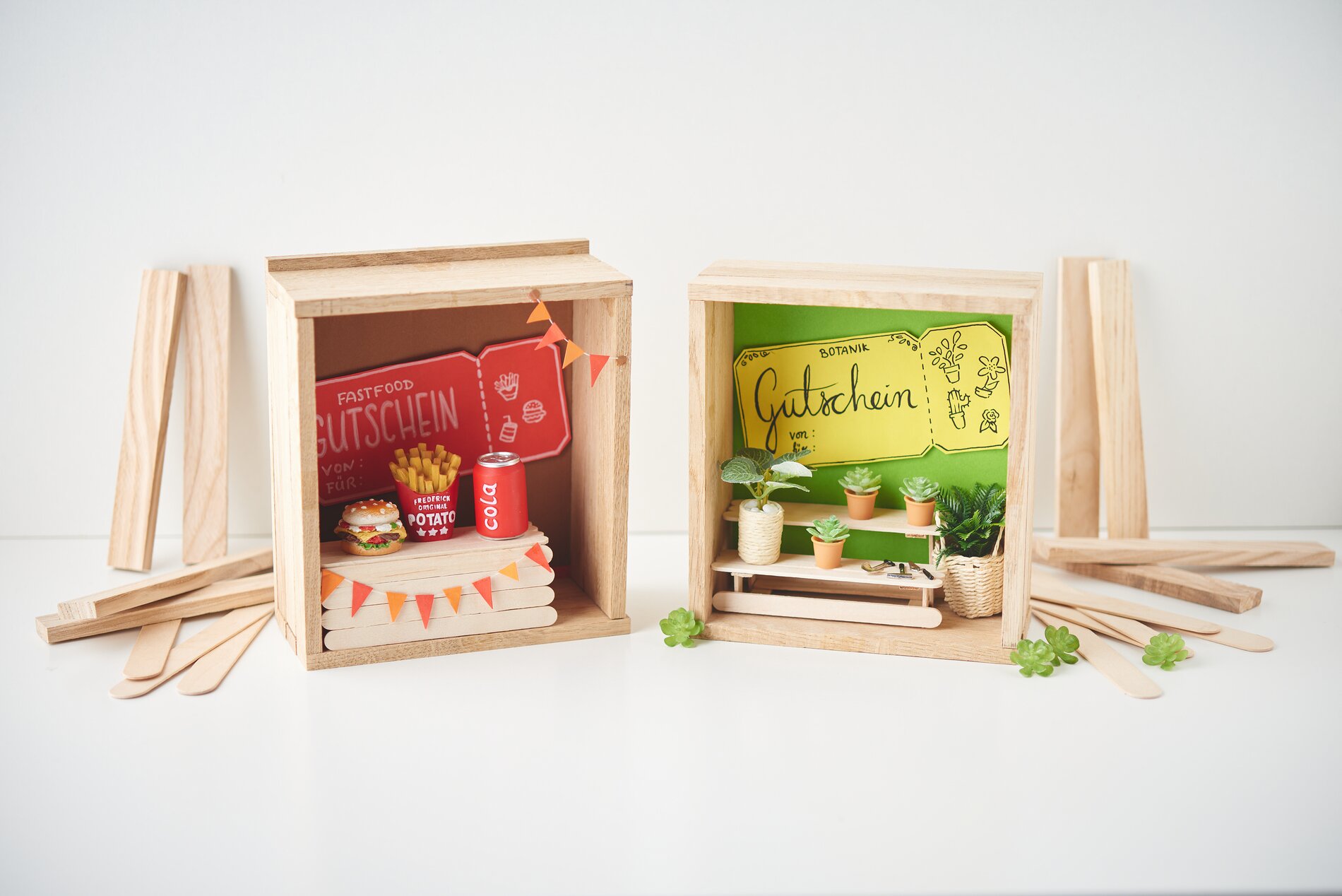 Experience the fun of crafting with these unique instructions for creating your own miniature scene. Ideal as a decorative element or personal gift with a customized Voucher. Let your imagination run wild!