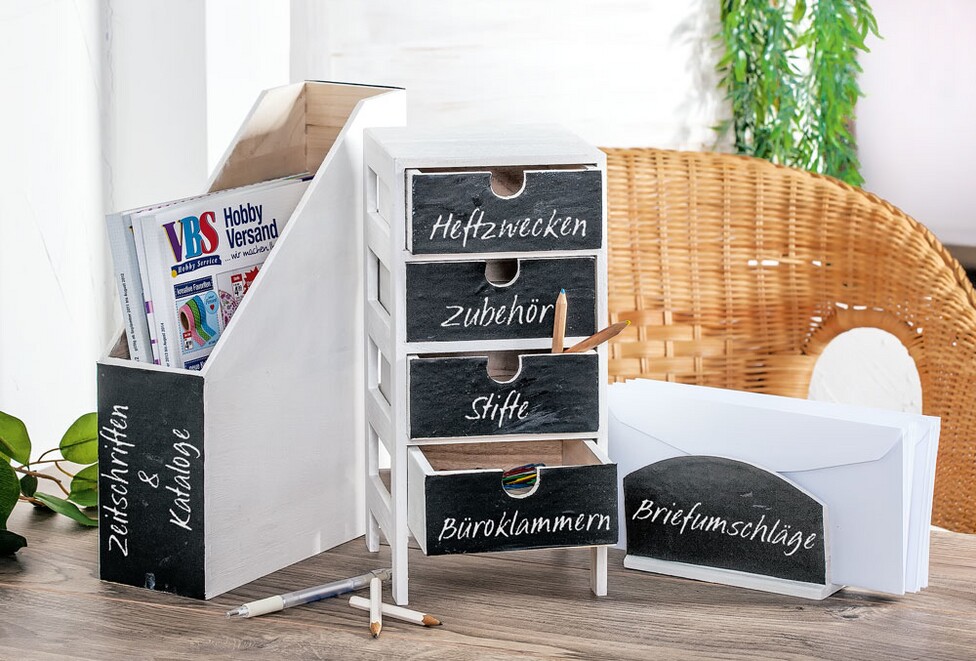 Organize your office with this simple technology. The Blackboard film allows you to keep the labeling always up to date, completely adapted to the content. And if you don't have a notepad at your disposal.. - your new utensils are also ideal for this.