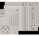 Motif block "Gray Card Hot Foil" 20 sheets with a paper weight of 250\ g/m² and a format of DIN A4. You receive 5 sheets per design. This Paper is equipped with a high-quality Hot foil print. The motives are small to large dots and stars. This Paper is printed on one side
