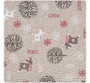 A wonderful Motif fabric "Frozen" in linen look with a width of 140 cm. This is a fabric made fabrics by the meter of 50% cotton and 50% polyester, printed with reindeer, trees and snowflakes.