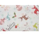 A great Motif fabric linen look "Merry Christmas" with a width of 140 cm and a motif size of about 0.9 - 7 cm. It fabrics by the meter consists of 50 % cotton and 50 % polyester with a fabric weight of 180 g/m². Washable at 30° C in the gentle wash cycle. Merry Christmas!, Christmas Balls, deer, snow stars and holly twigs are printed on a light background.