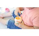 The MUCKI Softi finger paints set of 6 consists of the colors Softie yellow, Softie orange, Softie pink, Softie purple, Softie green and Softie turquoise. The creamy, pasty consistency is ideal for use with fingers and hands and ensures a unique painting experience. The water-based paints are easy to wash off the hands and can be washed out of most textiles at a temperature of 30 °C and above. So it's not so bad if some paint ends up outside the picture.