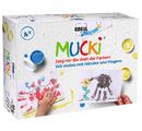 • 5 cans of MUCKI Finger paint each 50 ml in the colours white, Yellow, Red, Blue and Black