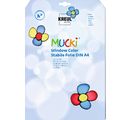 The package contains 3 sheets of MUCKI Window Color stable painting foils, each DIN A4 format, 0.4 mm thick.