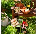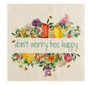 Enjoy the Napkin "Be Happy" from HOME FASHION and be inspired by the various garden flowers and gardening tools such as a rake, shovel, wellington boot and watering can on a beige background. The napkin features the saying "don't worry bee happy" - which will bring a smile to everyone's face.