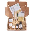 High quality natural cosmetics starter kit for making a fragrant hand cream with orange oil. The set includes all raw products as well as stirring sticks and practical cream jars for filling the finished cream.