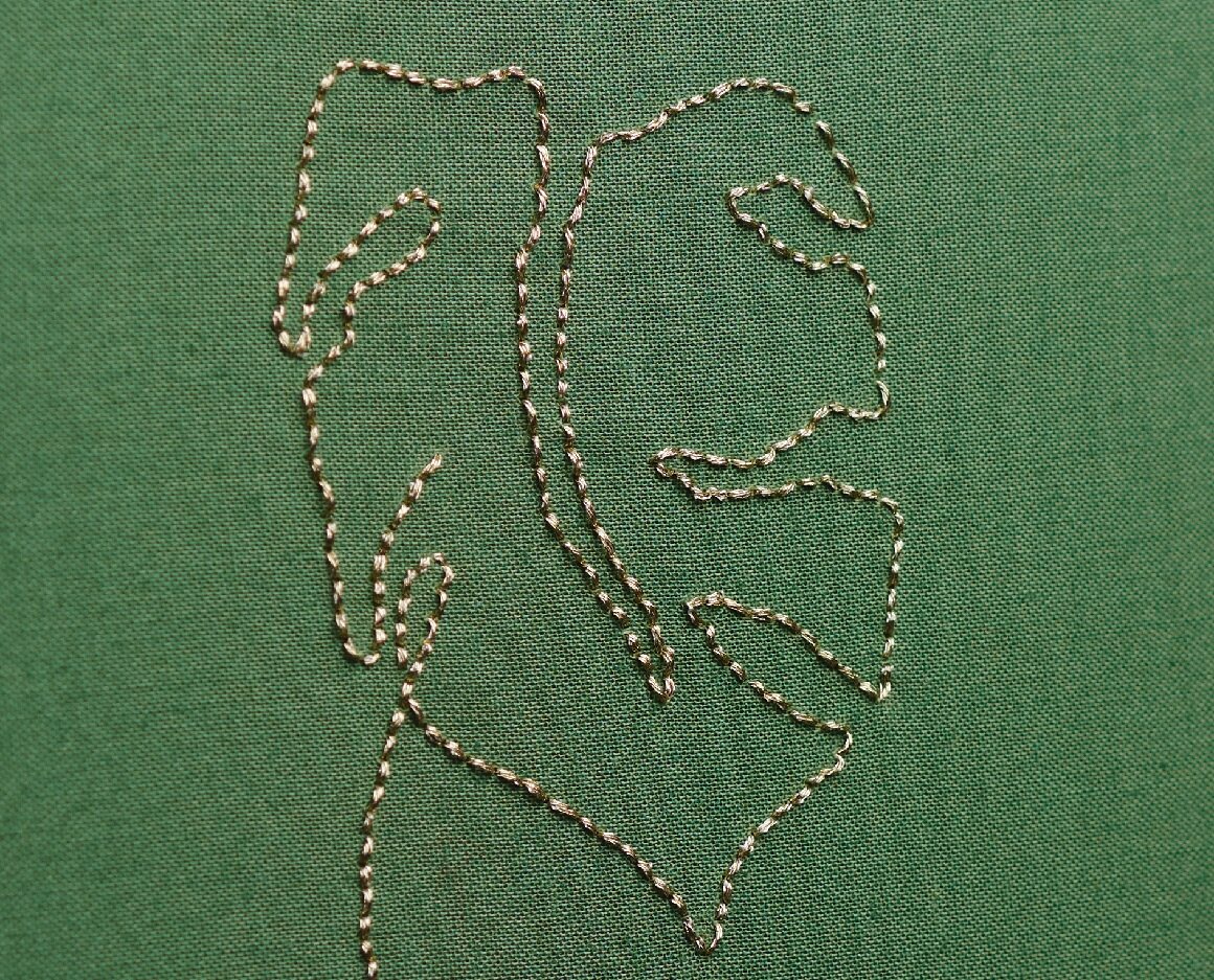 You now embroider with a back stitch. This involves using the embroidery needle to "trace" the outline of the embroidery design with needle and thread: