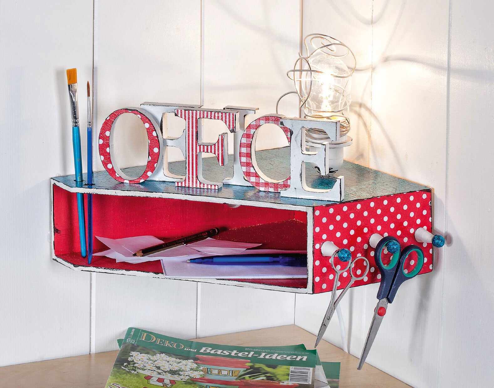 Accentuate all edges of the standing collector, letters, pen holder and lamp socket with black Handicraft paint .